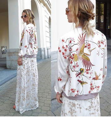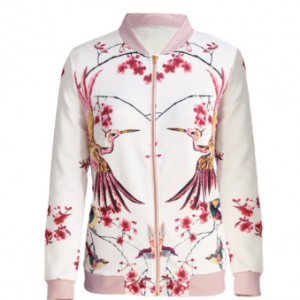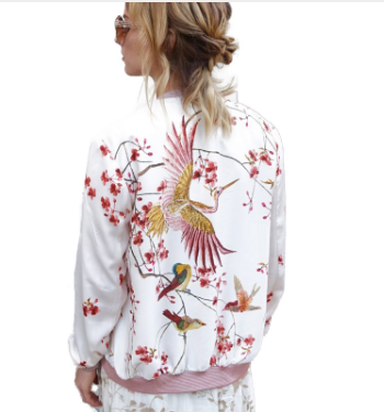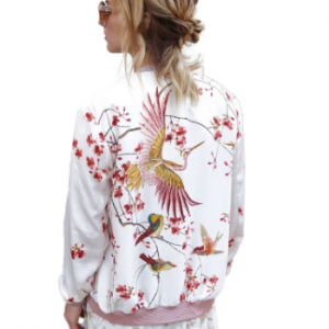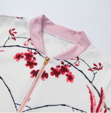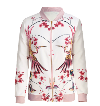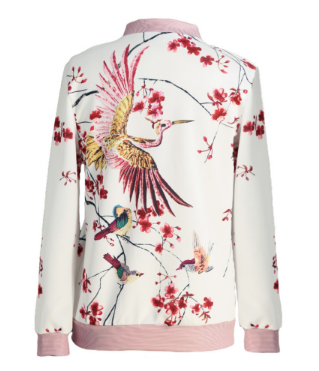 ג'קט נשים ספורטיבי באיור פרחים וציפורים