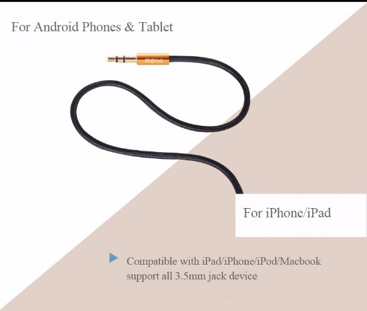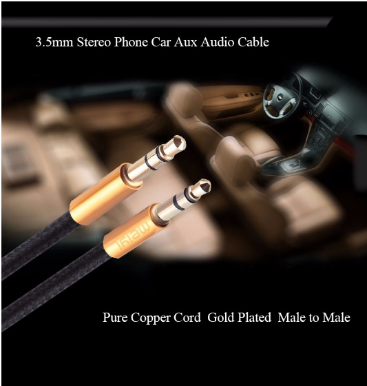 תקע מצופה זהב 3.5 מ"מ ג ' ק Aux כבל זכר זכר כבל אודיו לרכב ,רמקול ,אוזניות טלפון נייד MP4 MP3 iPhone