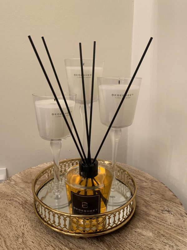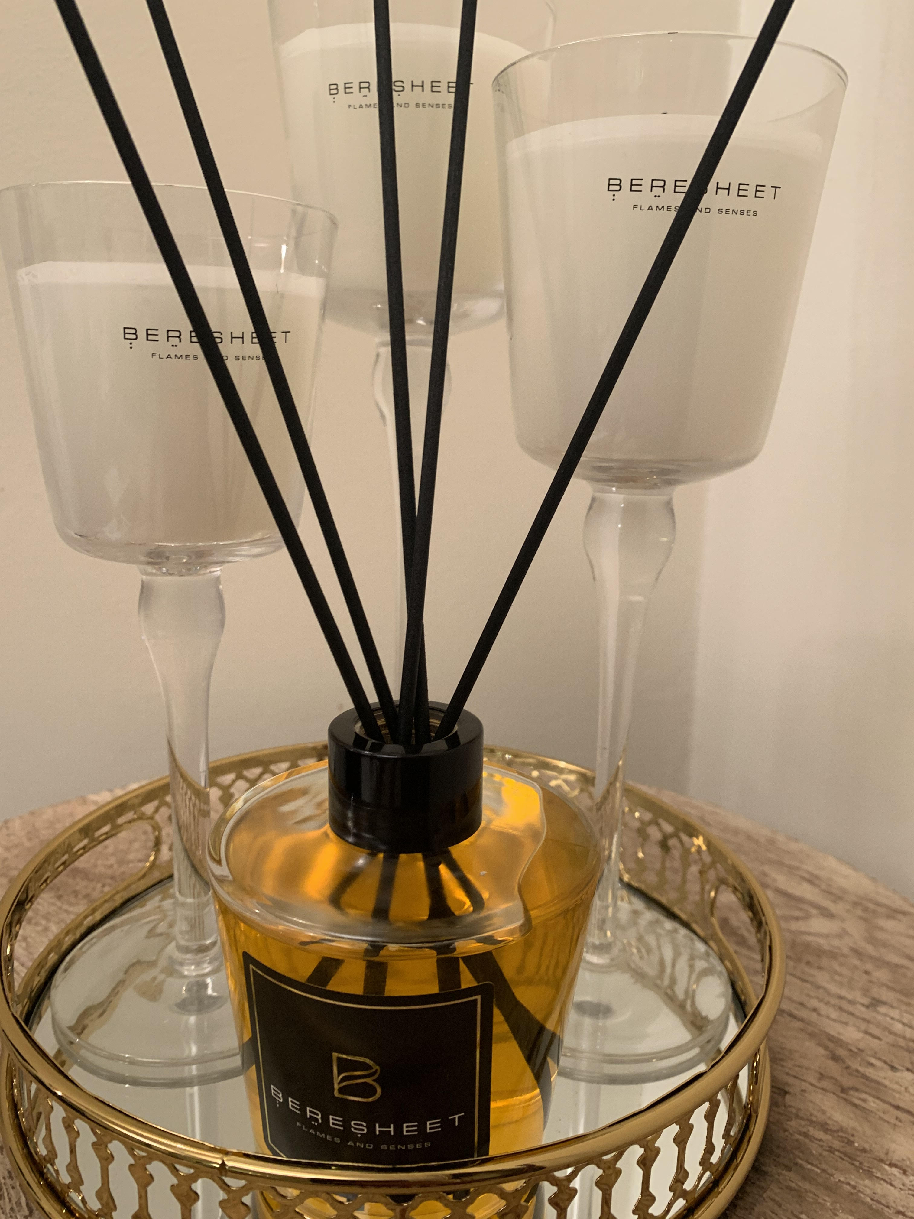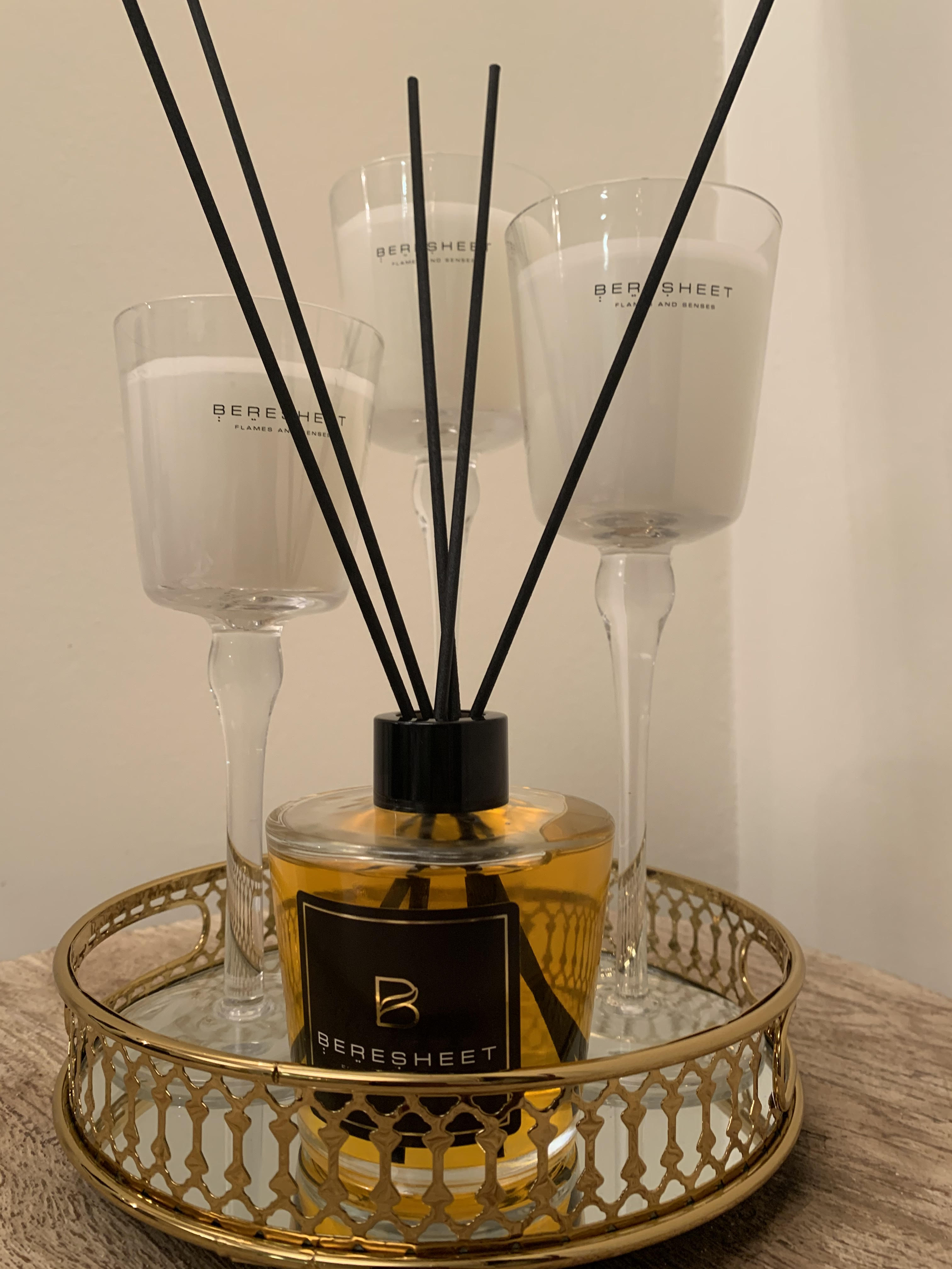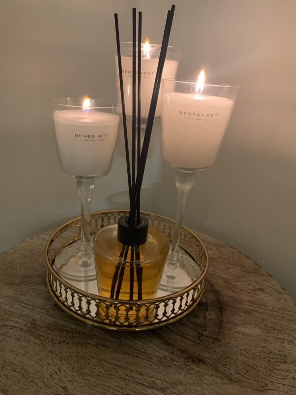 Be the first to review “מארז נרות ריחניים ,מפיץ ריח ומגש זהב מראה איכותי ומהודר”