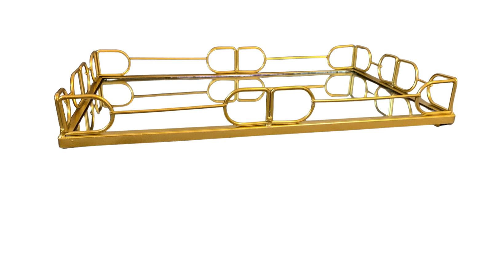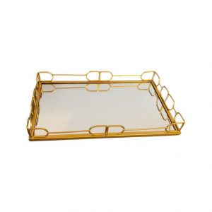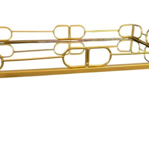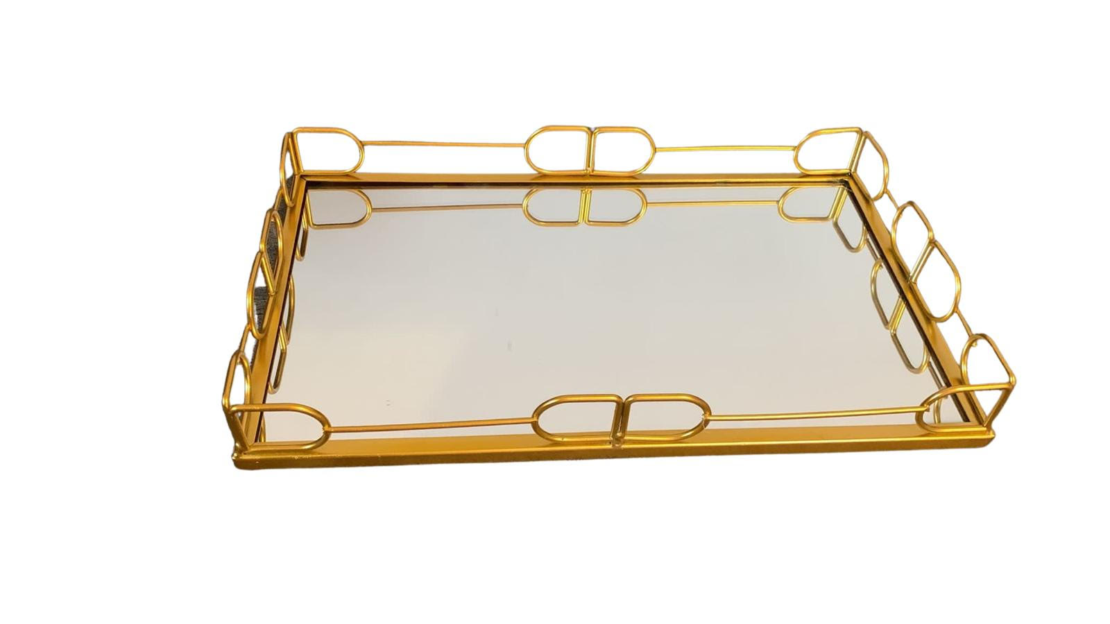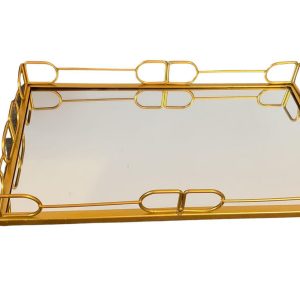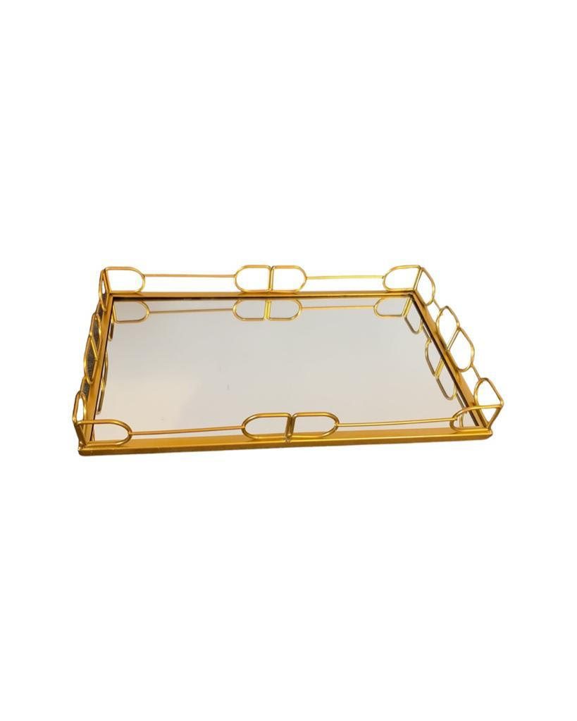 מגש אחסון מזהב ומראה למוצרי טואלטיקה/תכשיטים בסגנון וינטג'
