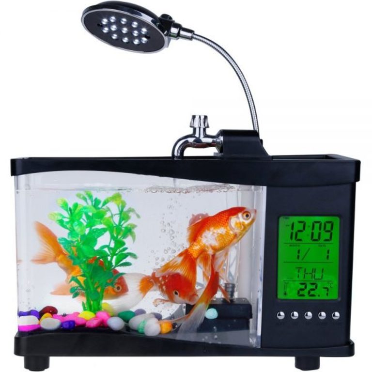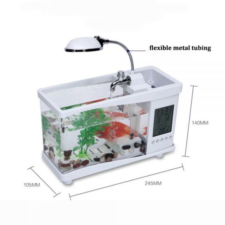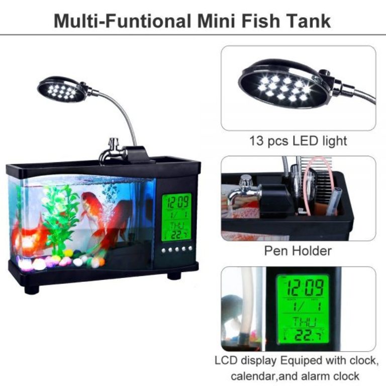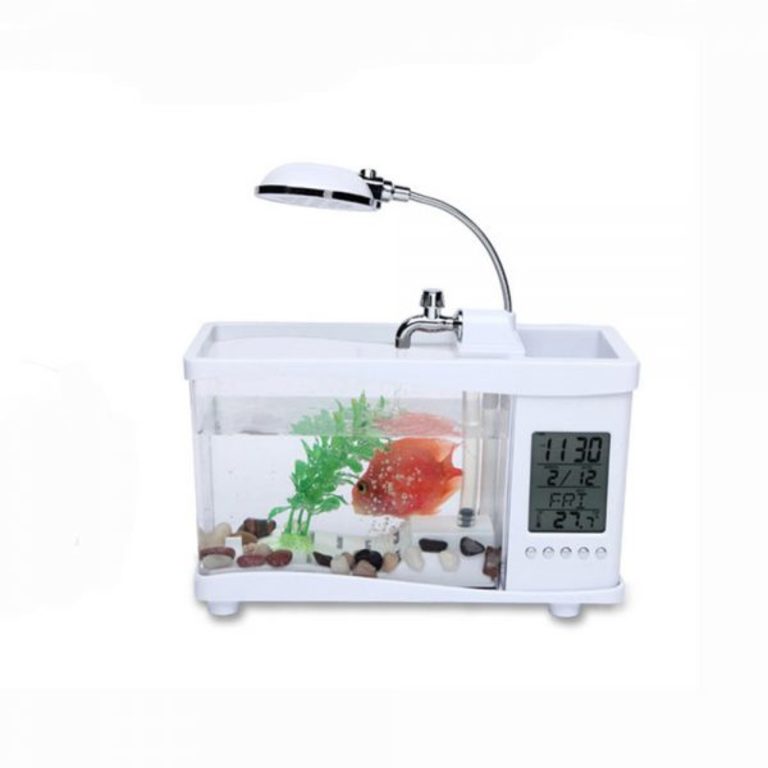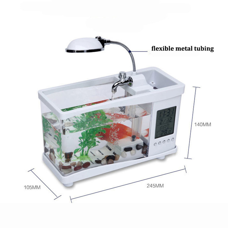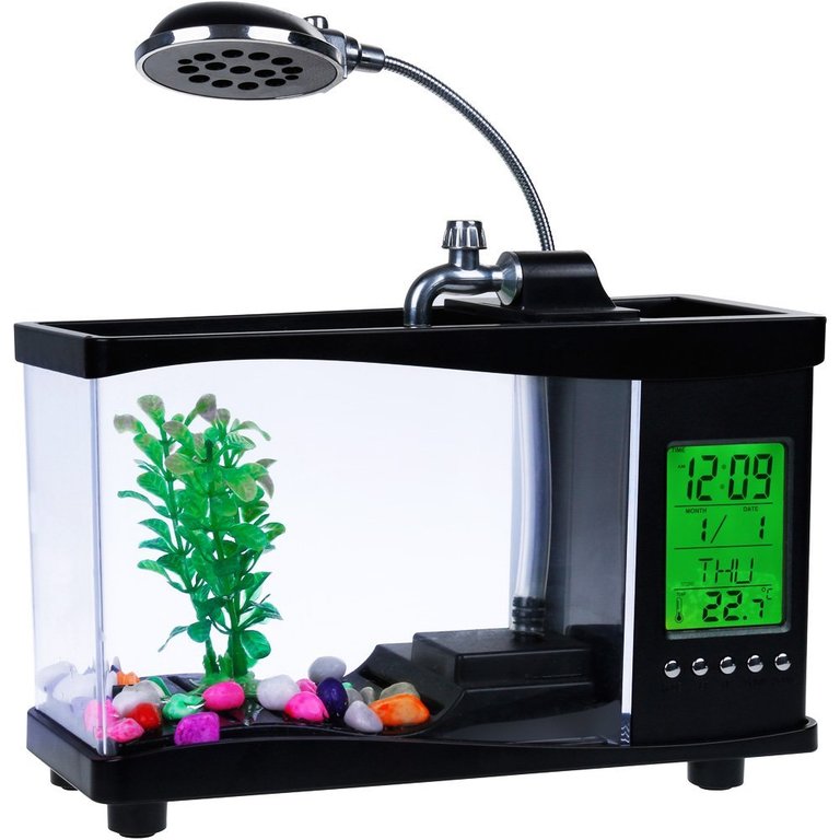 מיני אקווריום עם מנורת שולחן שעון ולוח שנה