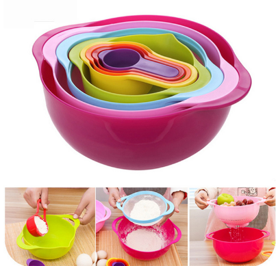 סט של שמונה חלקים קערות ואביזרים בצבעי הקשת