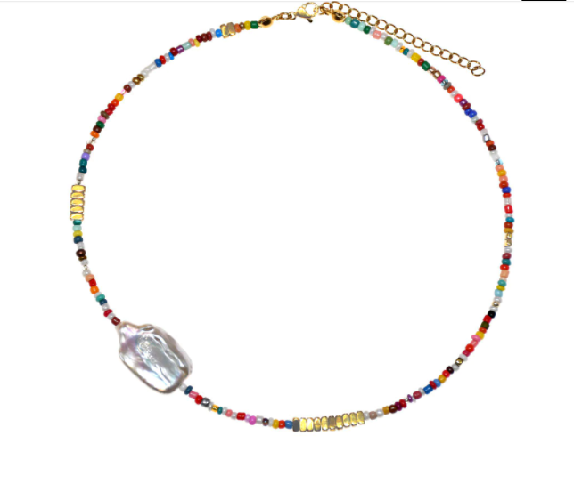 שרשרת אופנתית חרוזים צבעוניים ופנינה