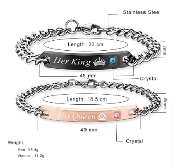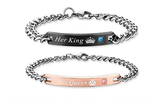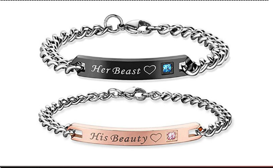צמידי מתכת עם כיתוב לזוג האוהבים