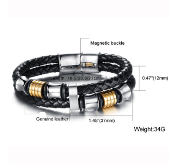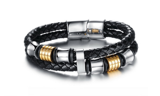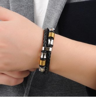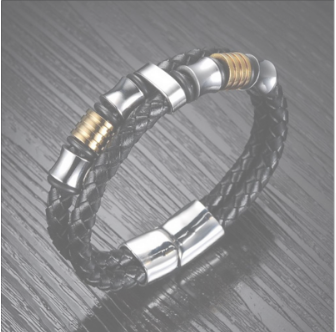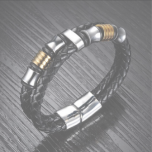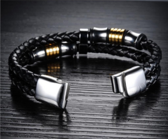 צמיד עור חבל וחרוזי פלדת אל חלד