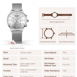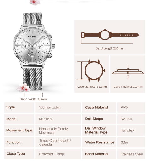 שעון רצועה מתכתית לאישה
