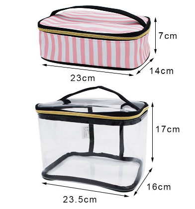 תיק איפור שקוף וחלקי תיקים בתוכו