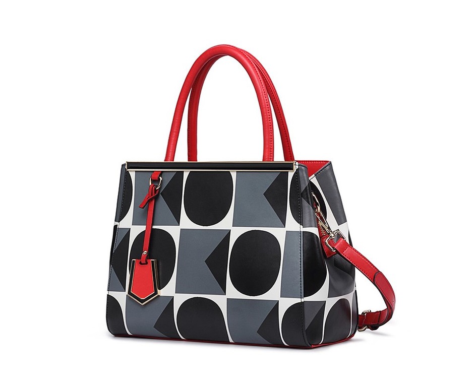 תיק יוקרתי מעור בהדפס גיאומטרי