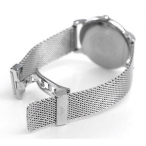 שעון יד אנלוגי לגבר בעל רצועת רשת בסגנון MESH בצבע כסף עם לוח שעון קלאסי בצבע כחול