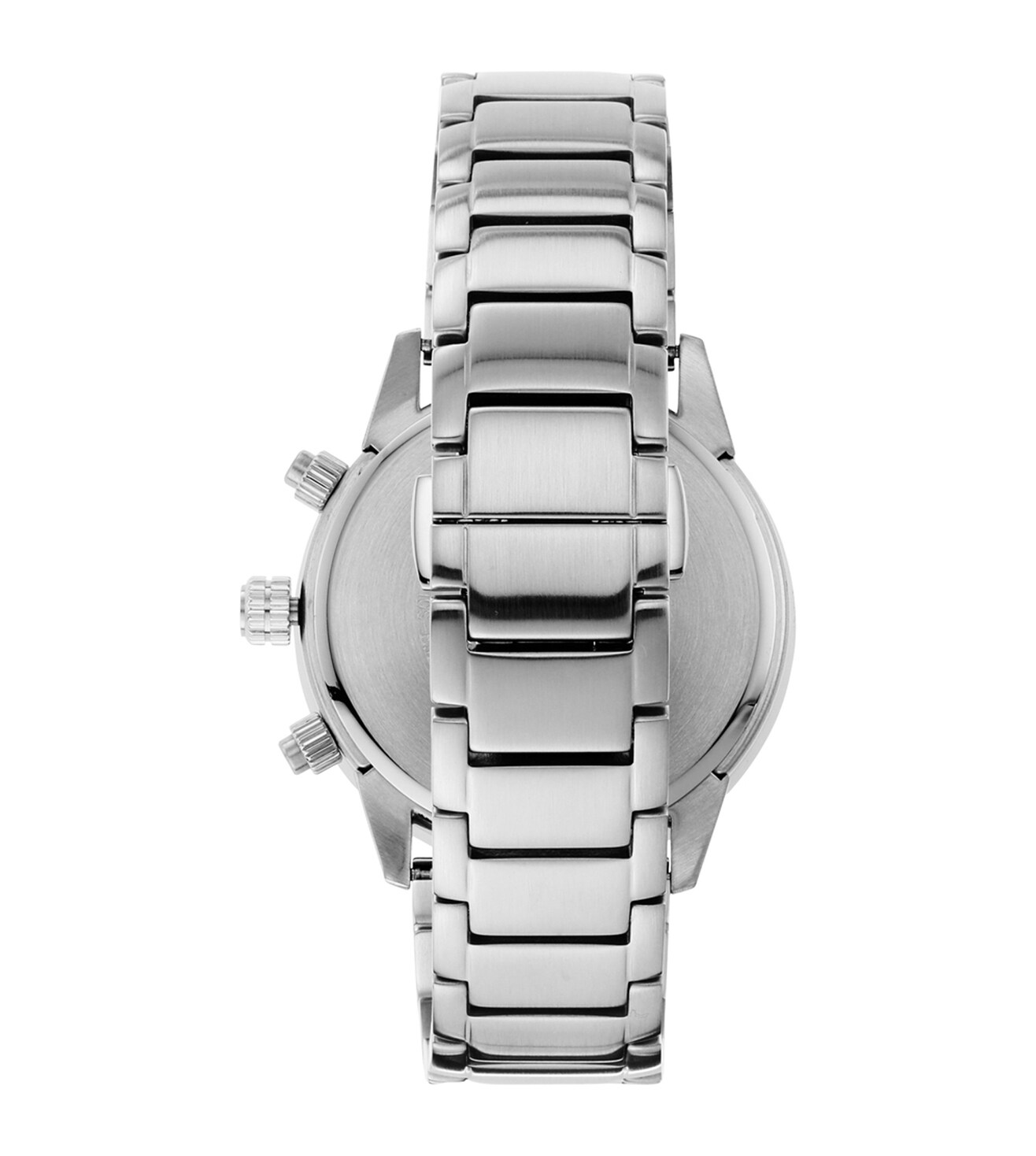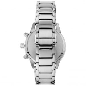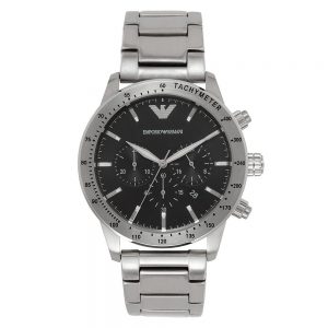 שעון ארמני קלאסי לגבר רצועת כסף מפלדת אל חלד לוח השעון שחור כולל בתוכו תאריכון