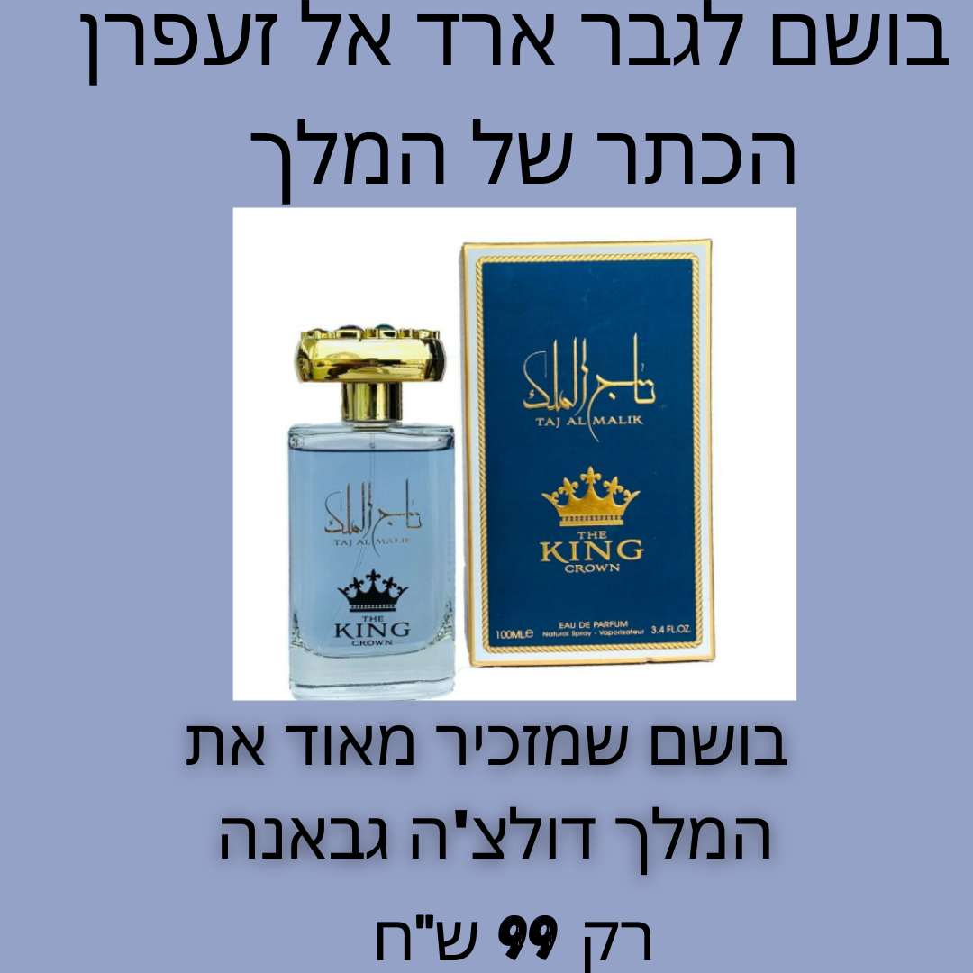 הבושם טאג' אל מליק (הכתר של המלך בתרגום לעברית) Taj Al Malik מבית הבישום ארד אל זעפרן Ard Al Zaafaran.
