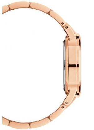 השעון בעל רצועת חוליות בצבע זהב אדום לוח השעון לבן עם אינדקסים בצבע זהב אדום