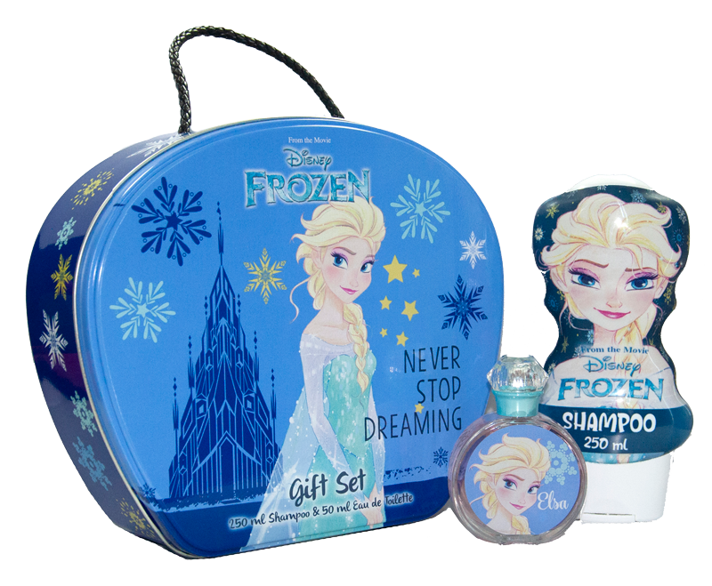 סט דיסני בדמוי אלזה מהסרט פרוזן Frozen הסט מכיל בושם אלזה בגודל 50 מ"ל, שמפו לשיער בגודל 250 מ"ל בתוך אריזת פרוזן מקושטת ומהודרת