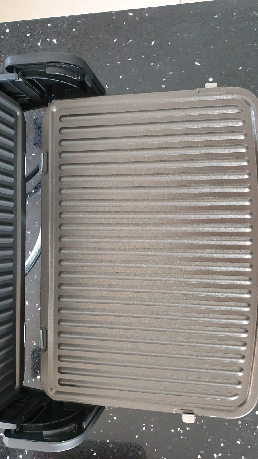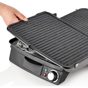 טוסטר גריל עשוי מנירוסטה עם פלטות נשלפות קלות לניקוי בעל משטח גרניט.
