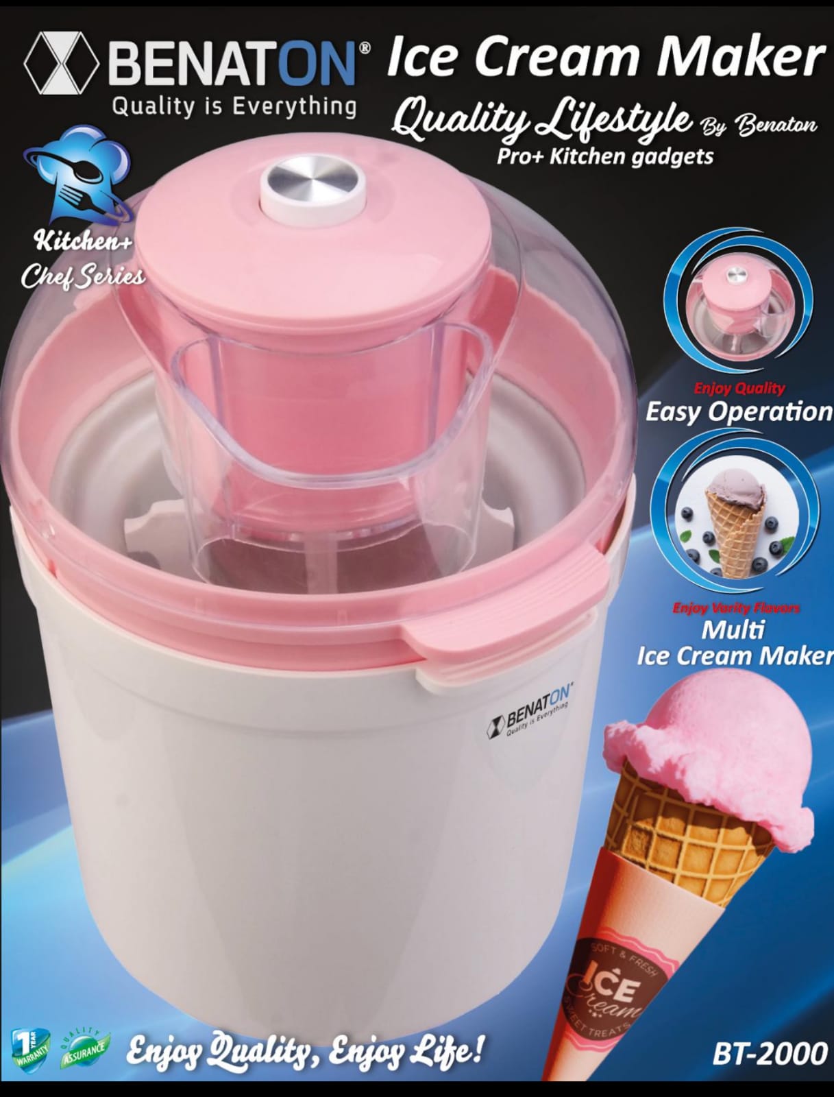 מכשיר ביתי להכנת גלידה מקצועית דגם BENATON BT-2002