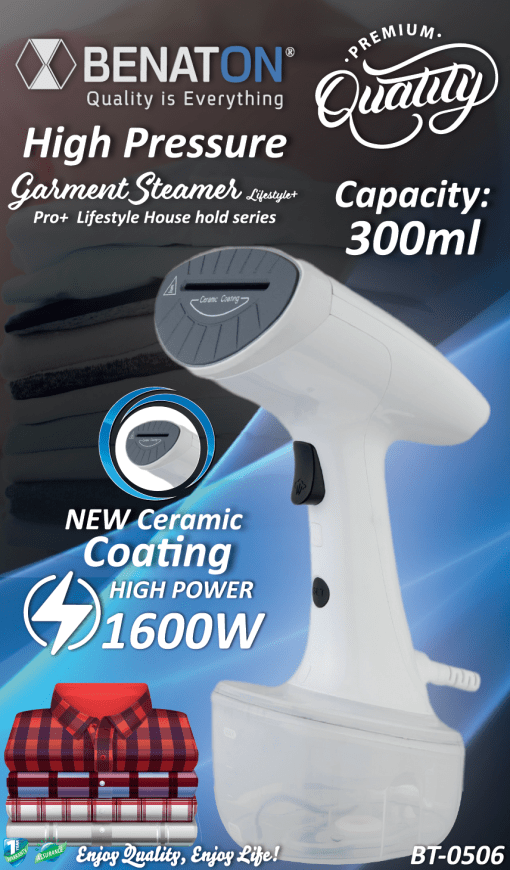 מגהץ קיטורי דגם BT-0506 מסדרת הPremium Quality מבית בנטון BENATON החברה המובילה במוצרי חשמל בייתים!