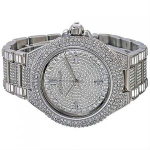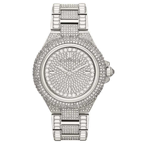 שעון Stainless Steel בצבע כסף משובץ אבני קריסטל לוח השעון משובץ אבני קריסטל