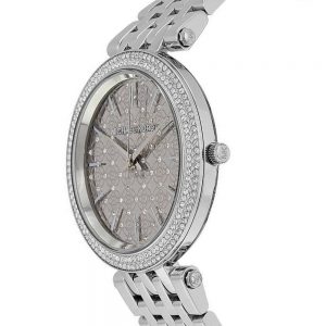 שעון עשוי מפלדת אל חלד בציפוי צבע כסף עם שיבוץ זרקונים בבזל השעון ובלוח השעון הקלאסי, מנגנון קוורץ איכותי ומדויק זכוכית מינרל חזקה ועמידה נגד שריטות