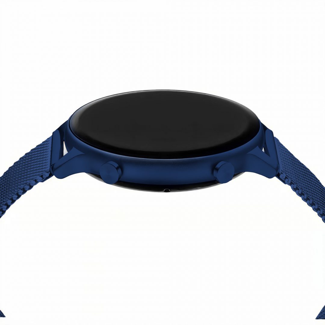 גוף השעון עשוי מפלדת אל חלד בצבע כחול מגיע עם רצועת רשת Mesh בצבע כחול ורצועה נוספת מתנה רצועת סיליקון ספורטיבית בצבע כחול, לוח השעון טאץ' עם מספר תצוגות מתחלפות וזכוכית מינרל חזקה ועמידה