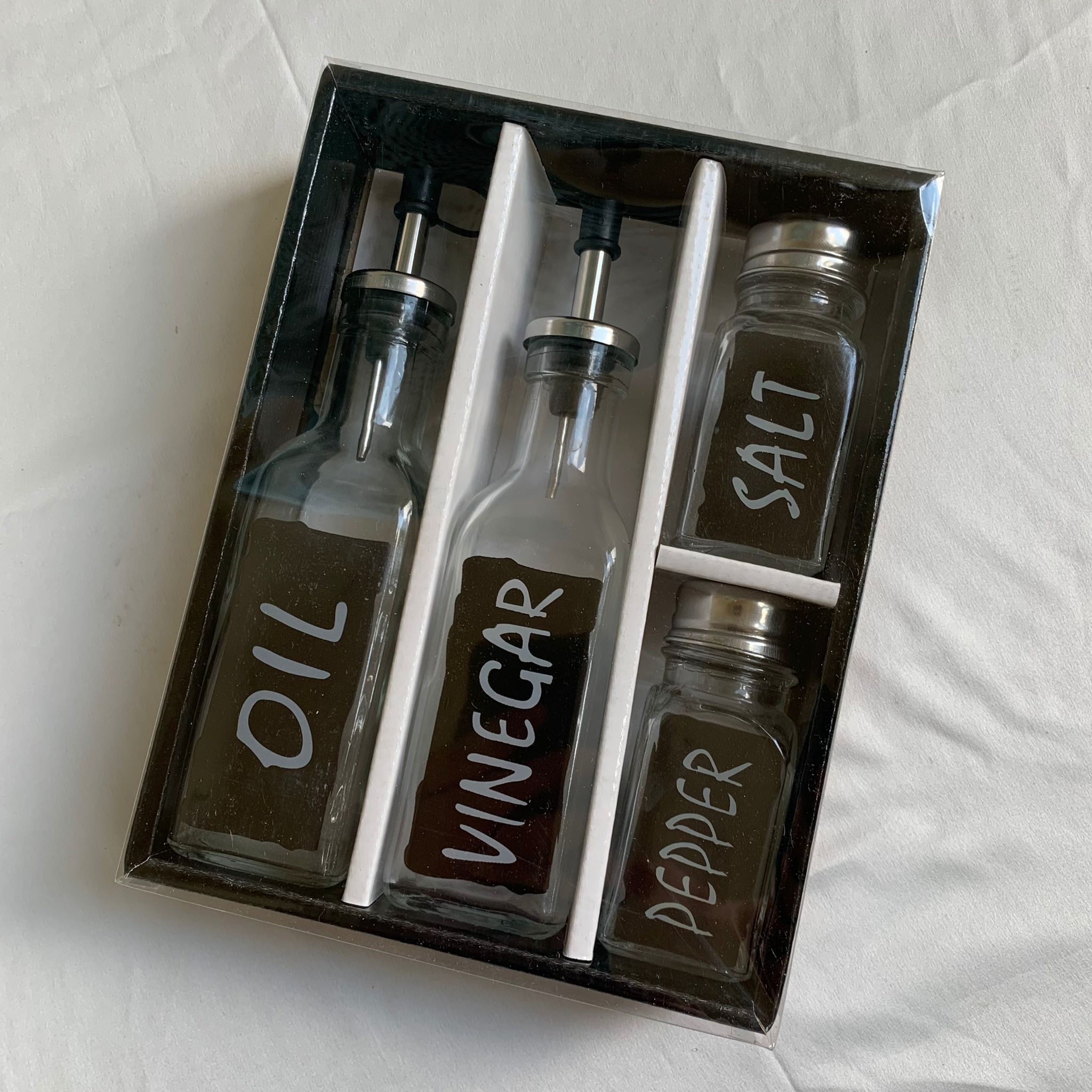 סט בקבוק שמן בקבוק חומץ מלח ופלפל שחור