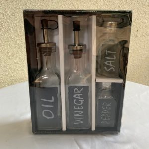 Be the first to review “סט בקבוק שמן בקבוק חומץ מלח ופלפל שחור”