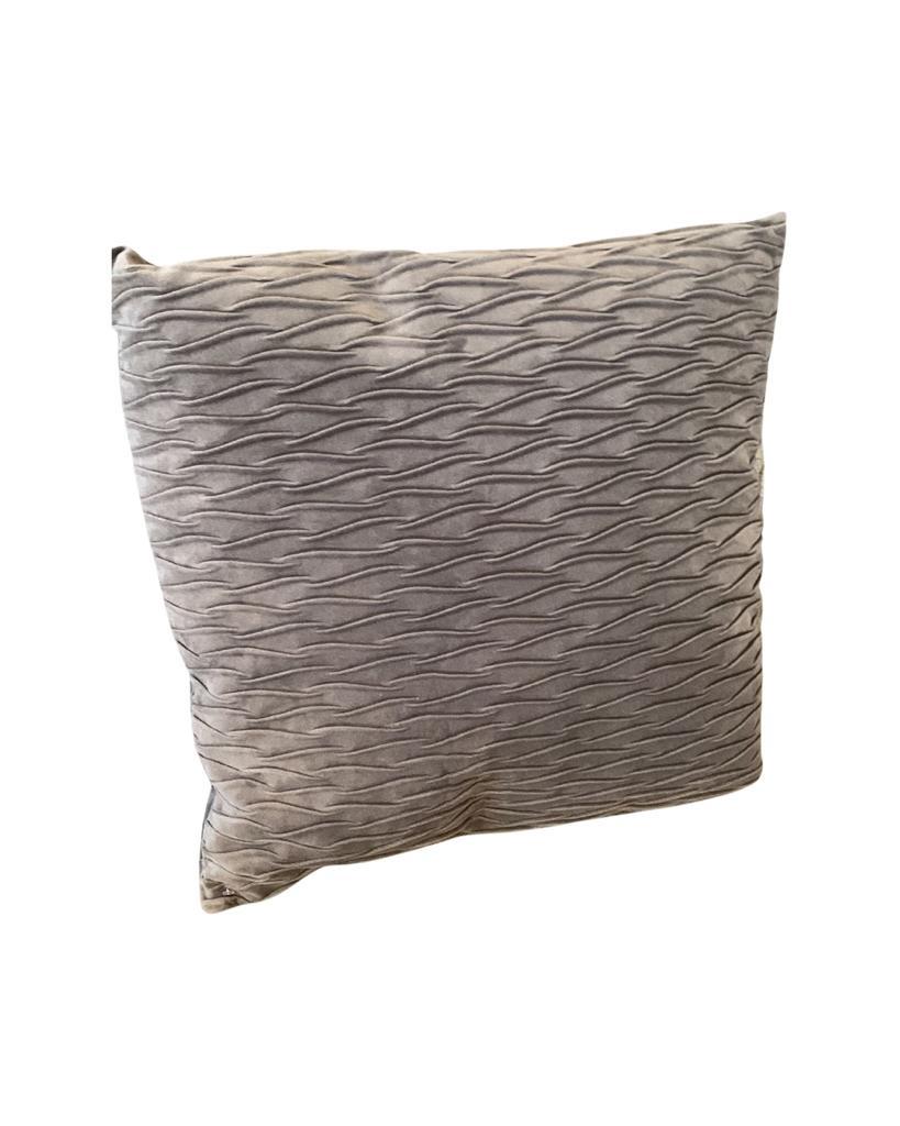 ציפית נוי עשויה מקטיפה רכה בצבע אפור בדגם מחוספס בעל פסים עדינים על כל רוחב הציפית.